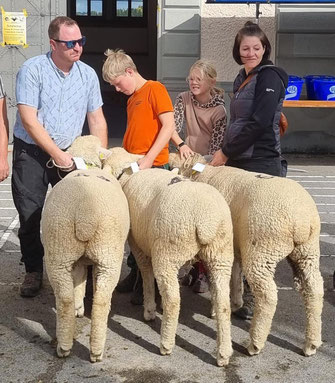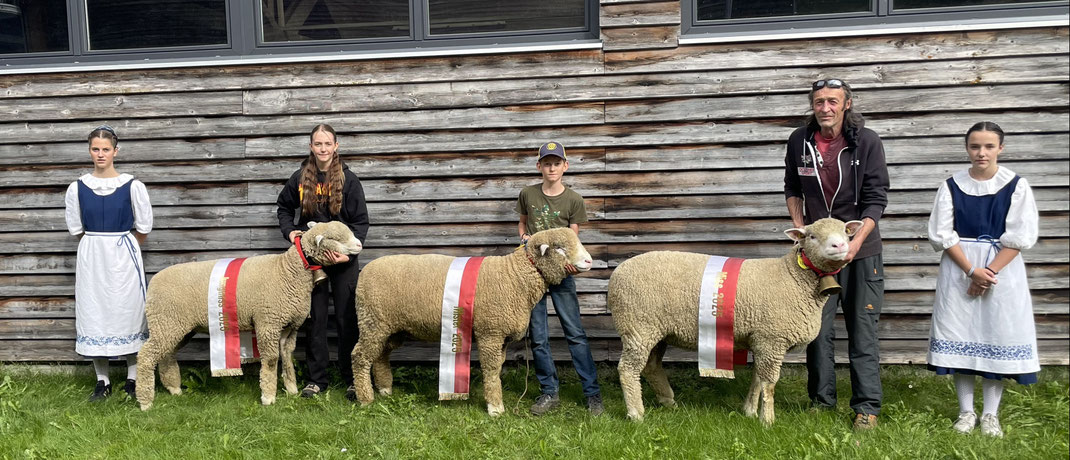 Jung Miss 2039.5875 ZEB und Mister Widder 2039.5869 ZEB von Familie Städler aus Zernez. Miss Schaf 2076.9617 CW von Jann Salzgeber aus Parpan.